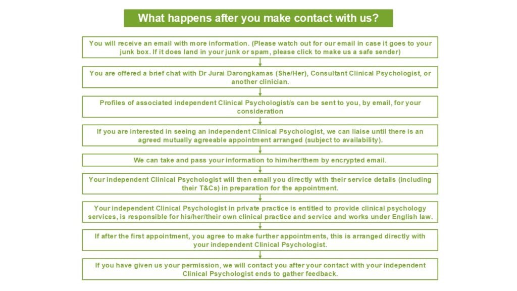 What to expect after you have reached out to National Clinical Psychology Service contact page, email, or phone enquiry.